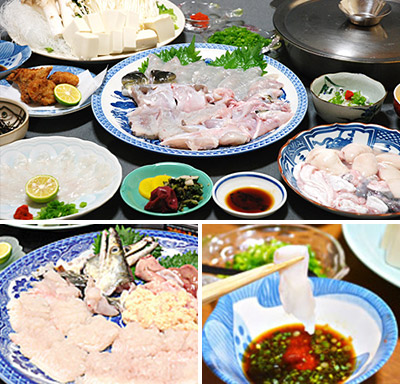 昼食・夕食ともに、手軽にふぐ料理を楽しめるお食事処です。